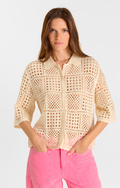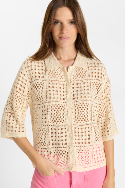 Cardigan crème en crochet à manches courtes