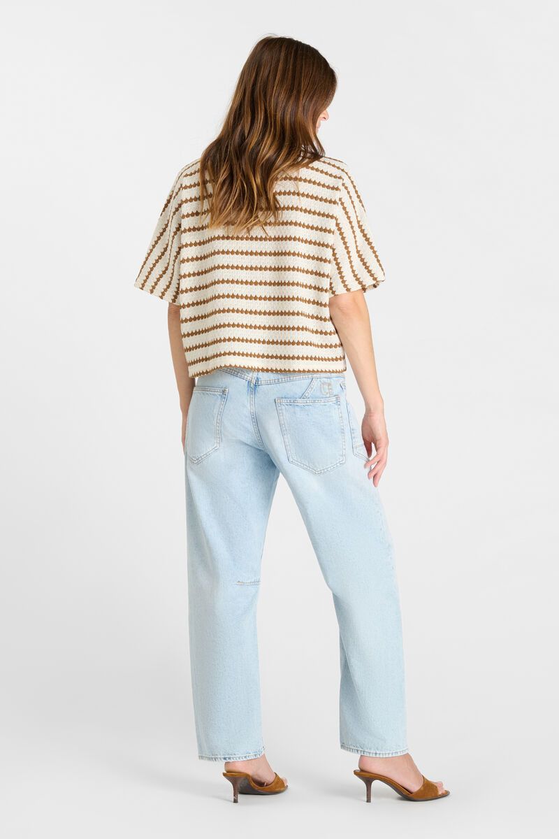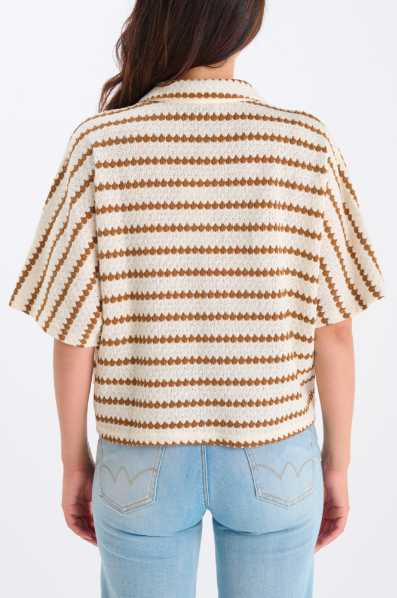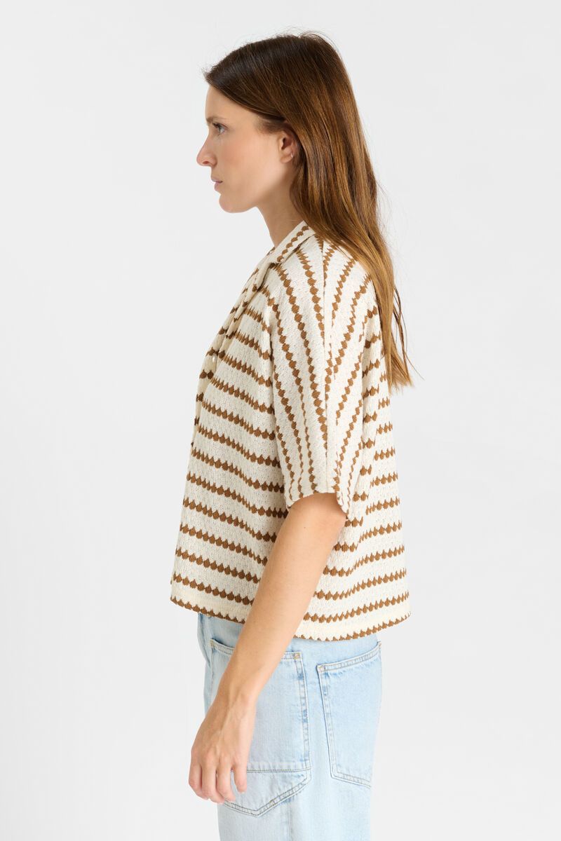 Chemise en maille rayé écru et camel