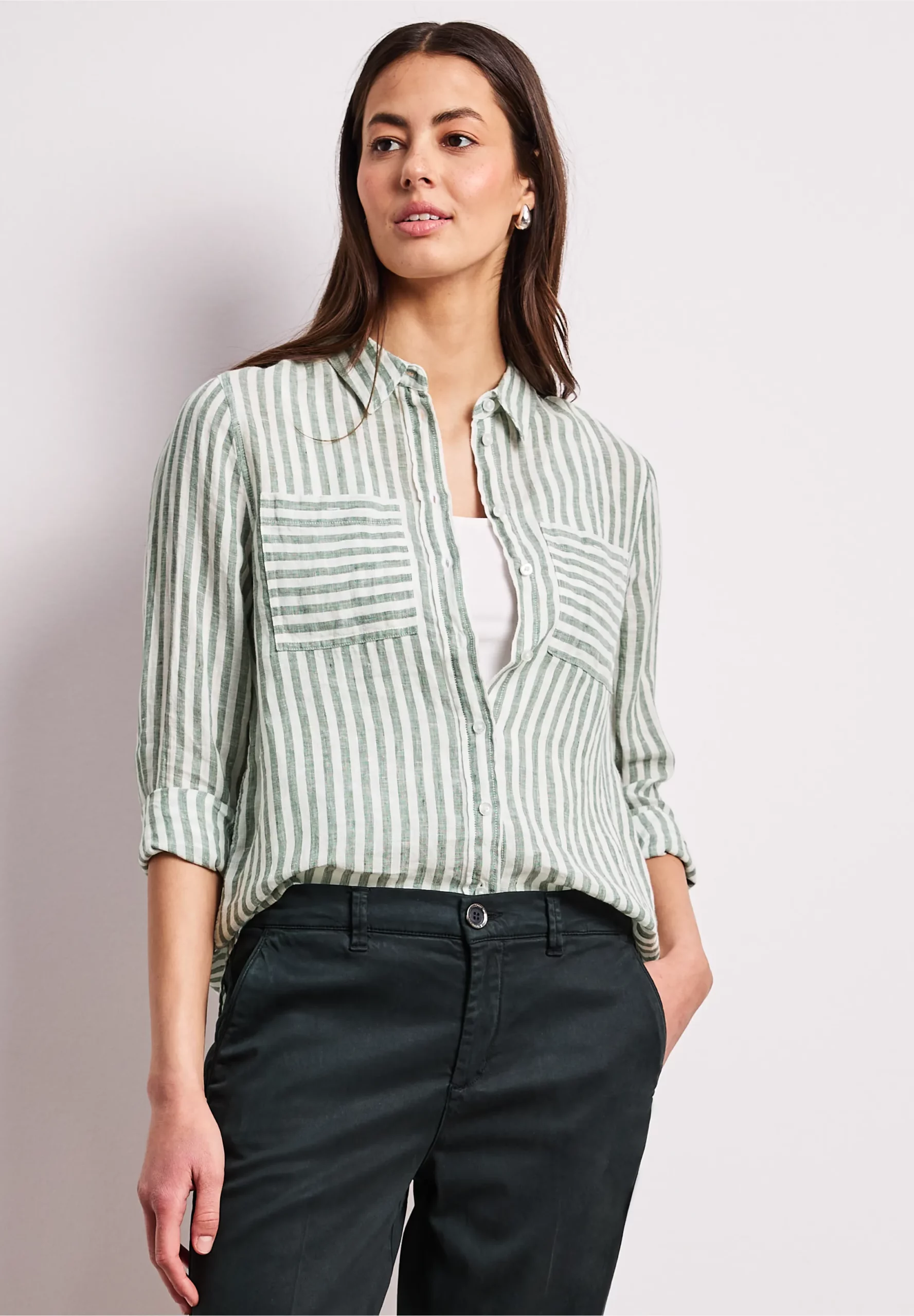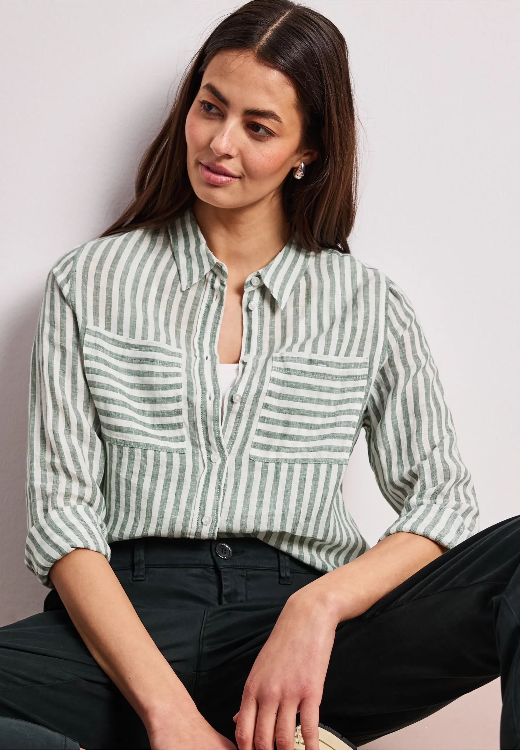 Chemisier rayé kaki en lin