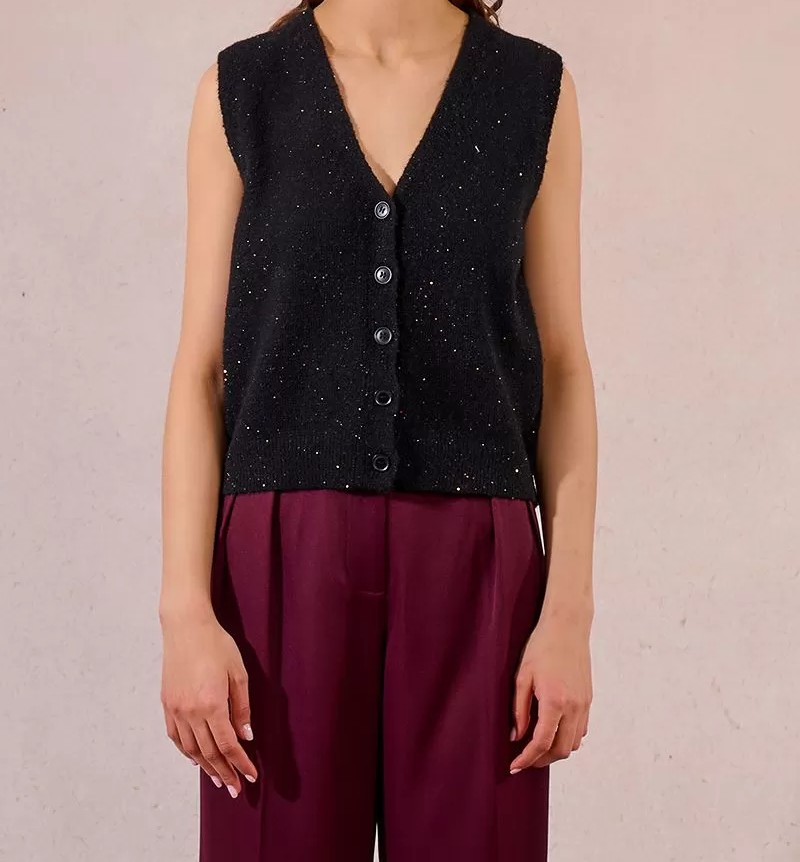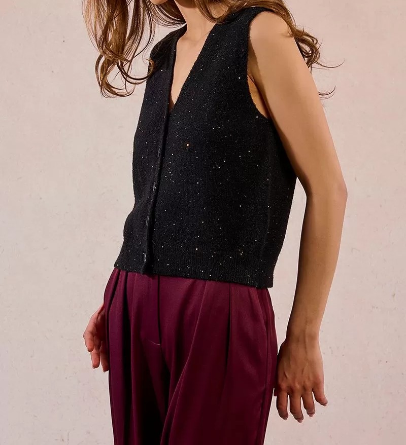 Gilet sans manches en maille Ă  sequins