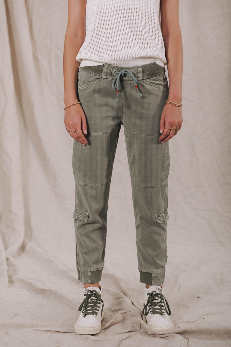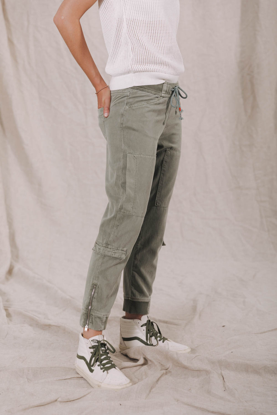 Pantalon cargo vert en lyocell