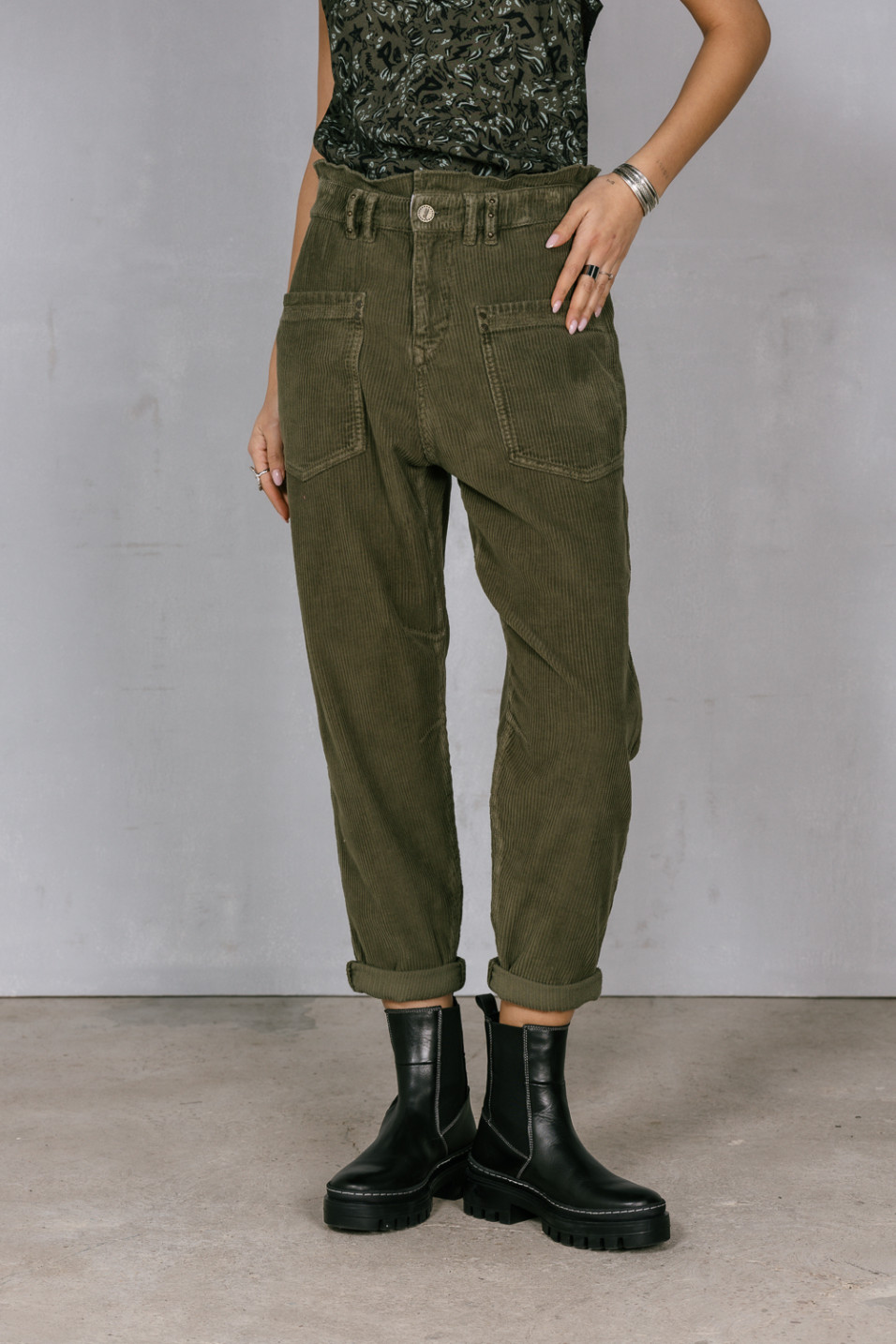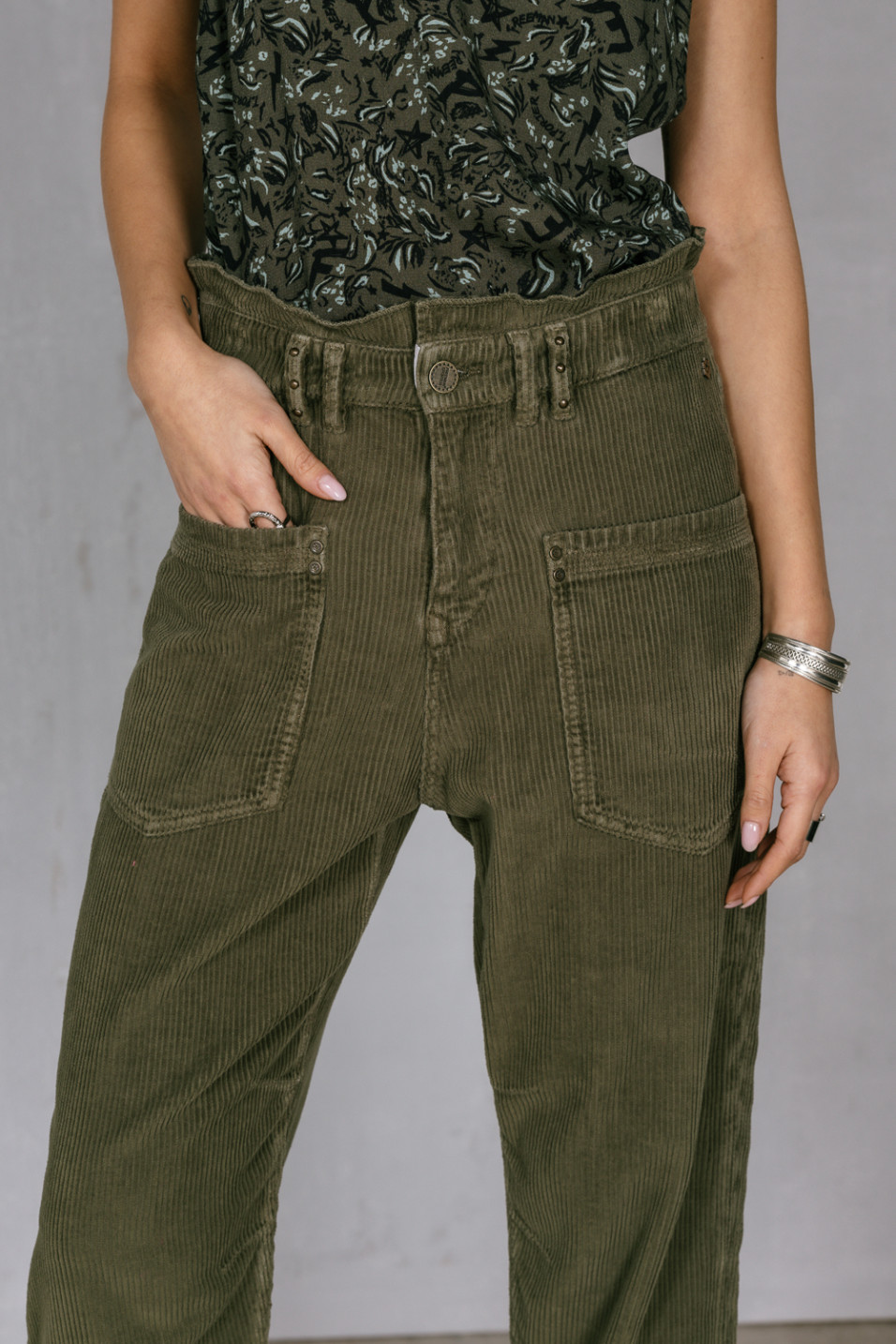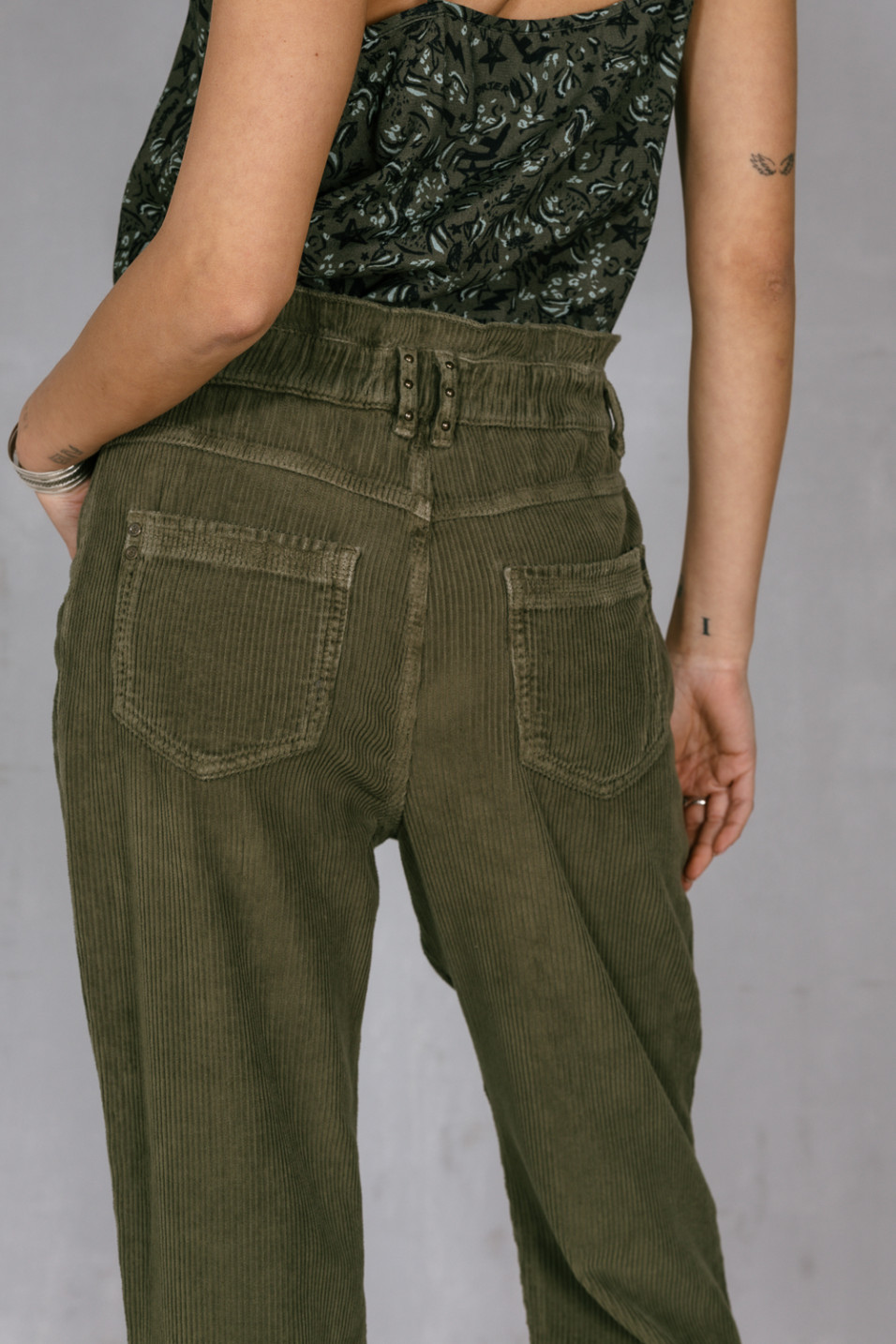 Pantalon en velours côtelé kaki