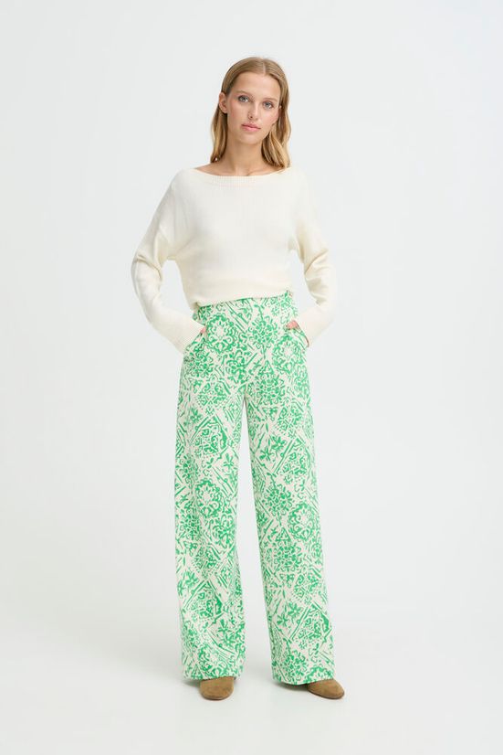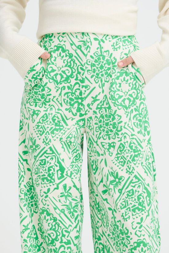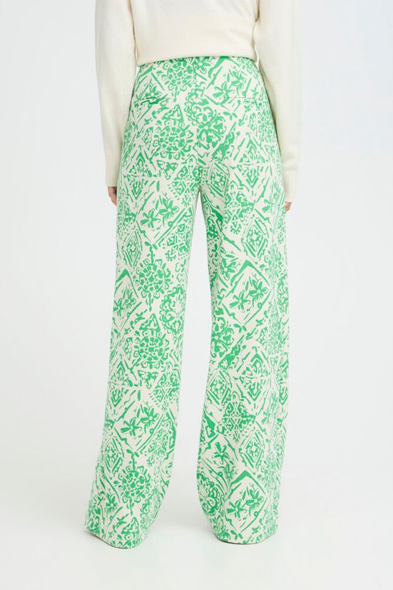 Pantalon large imprimé vert et écru