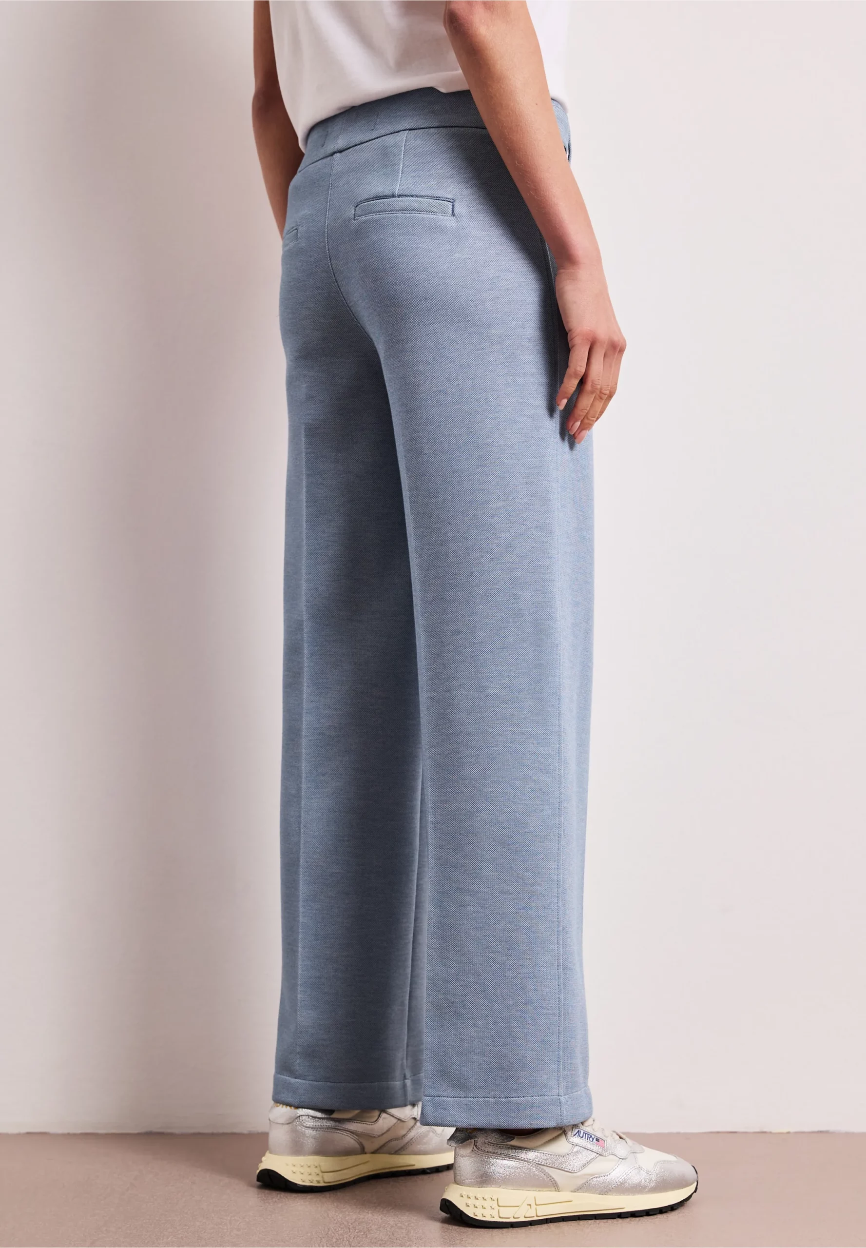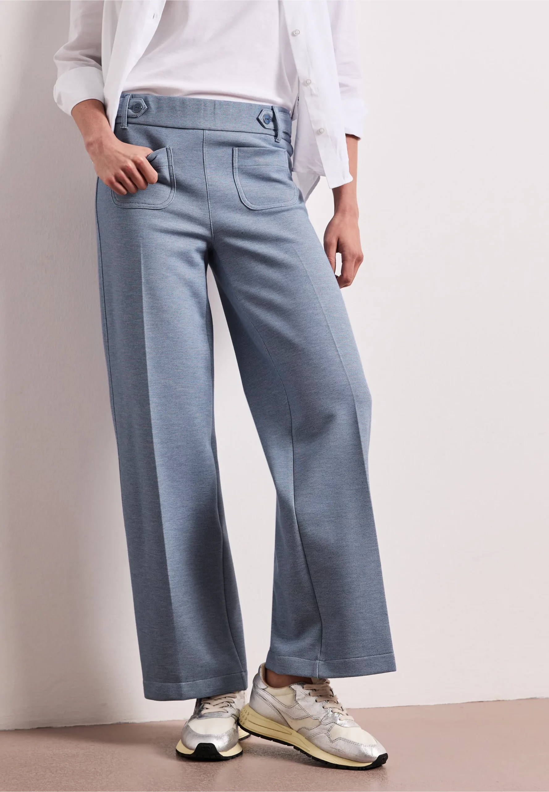 Pantalon piqué bleu avec détails de boutons