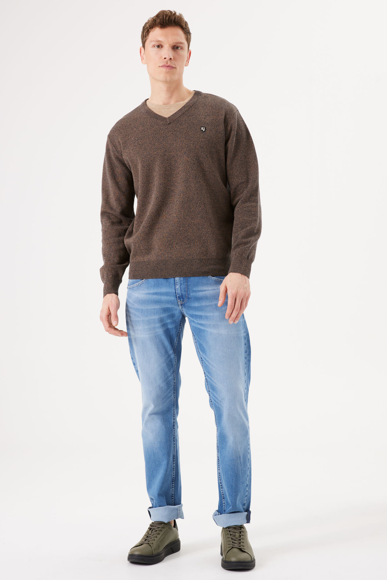 Pull col V marron