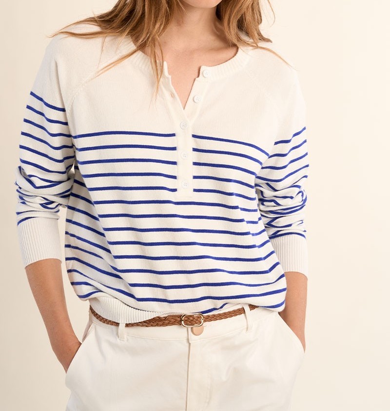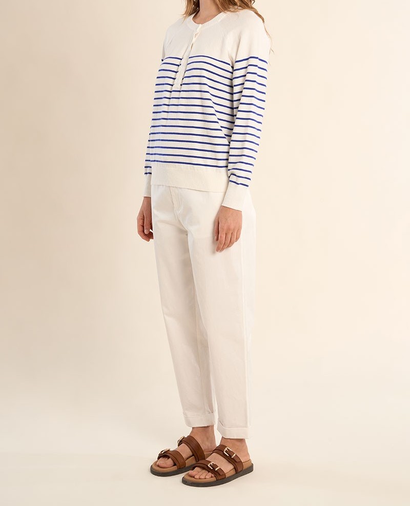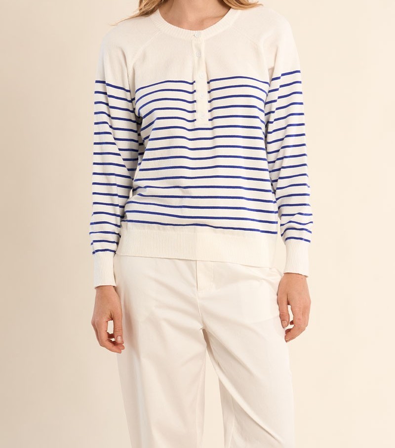 Pull col V rayé