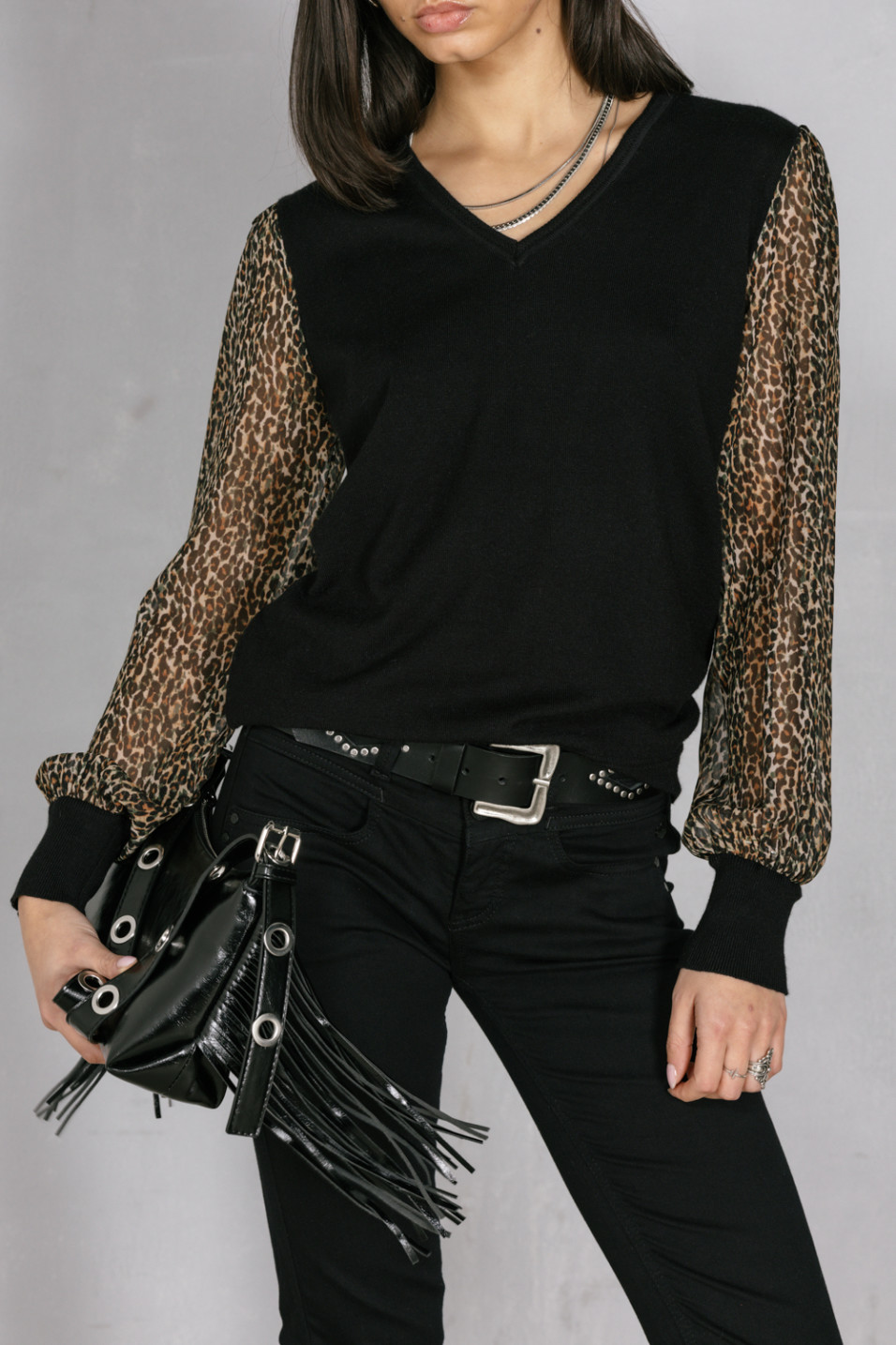 Pull manches transparentes léopard