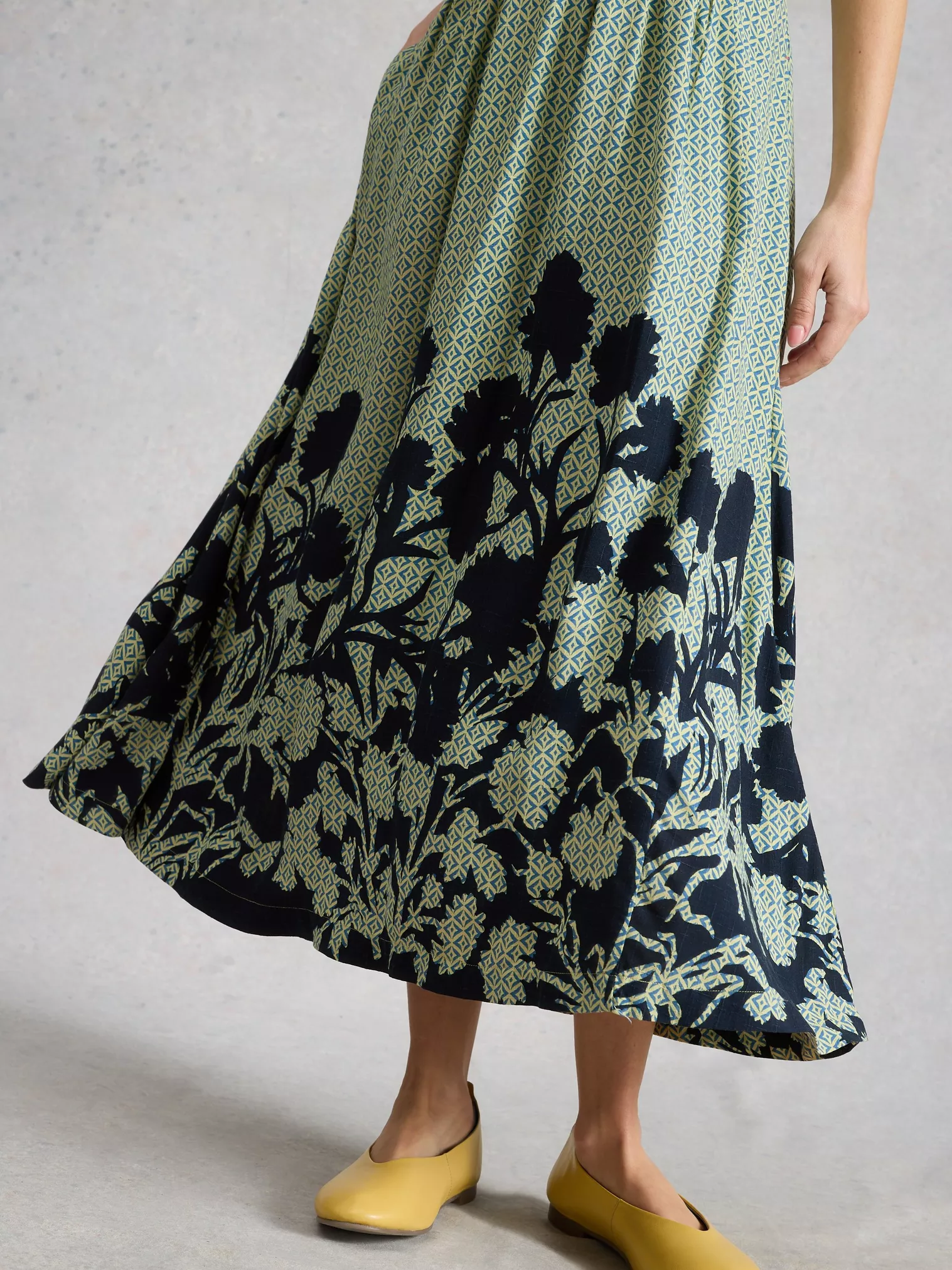 Robe longueur midi imprimé vert