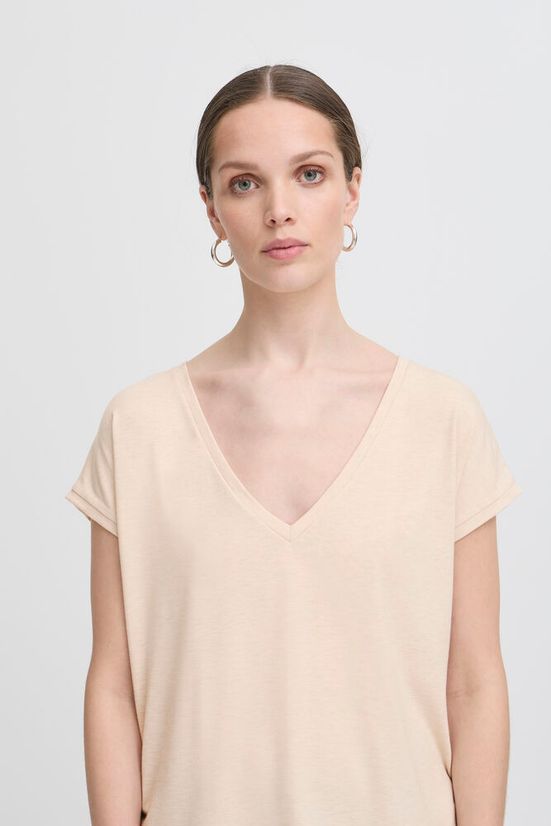 T-shirt col V beige/écru