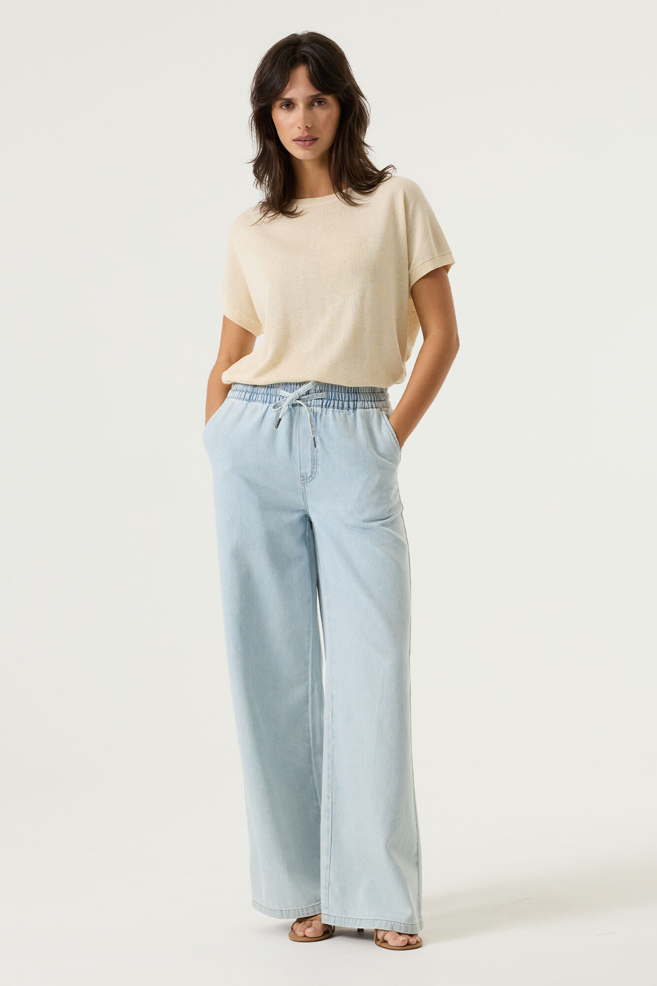 T-shirt en maille écru/beige