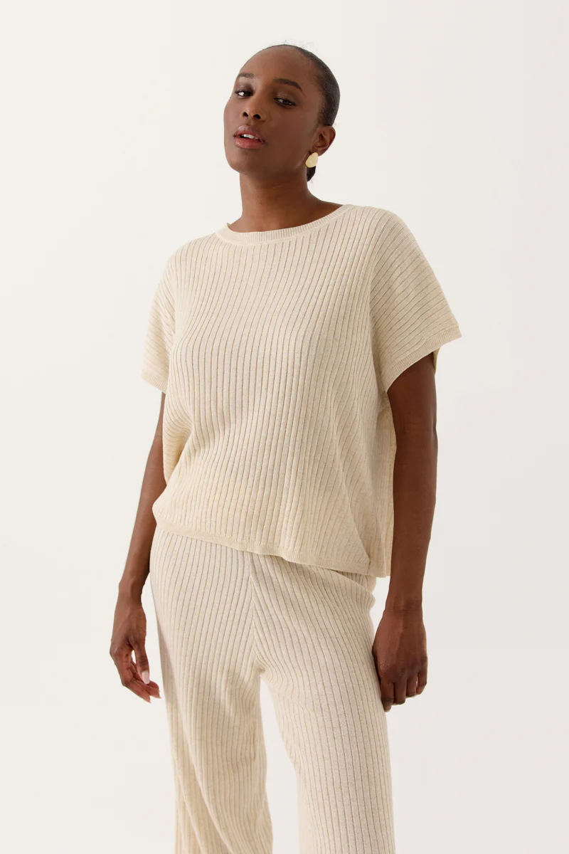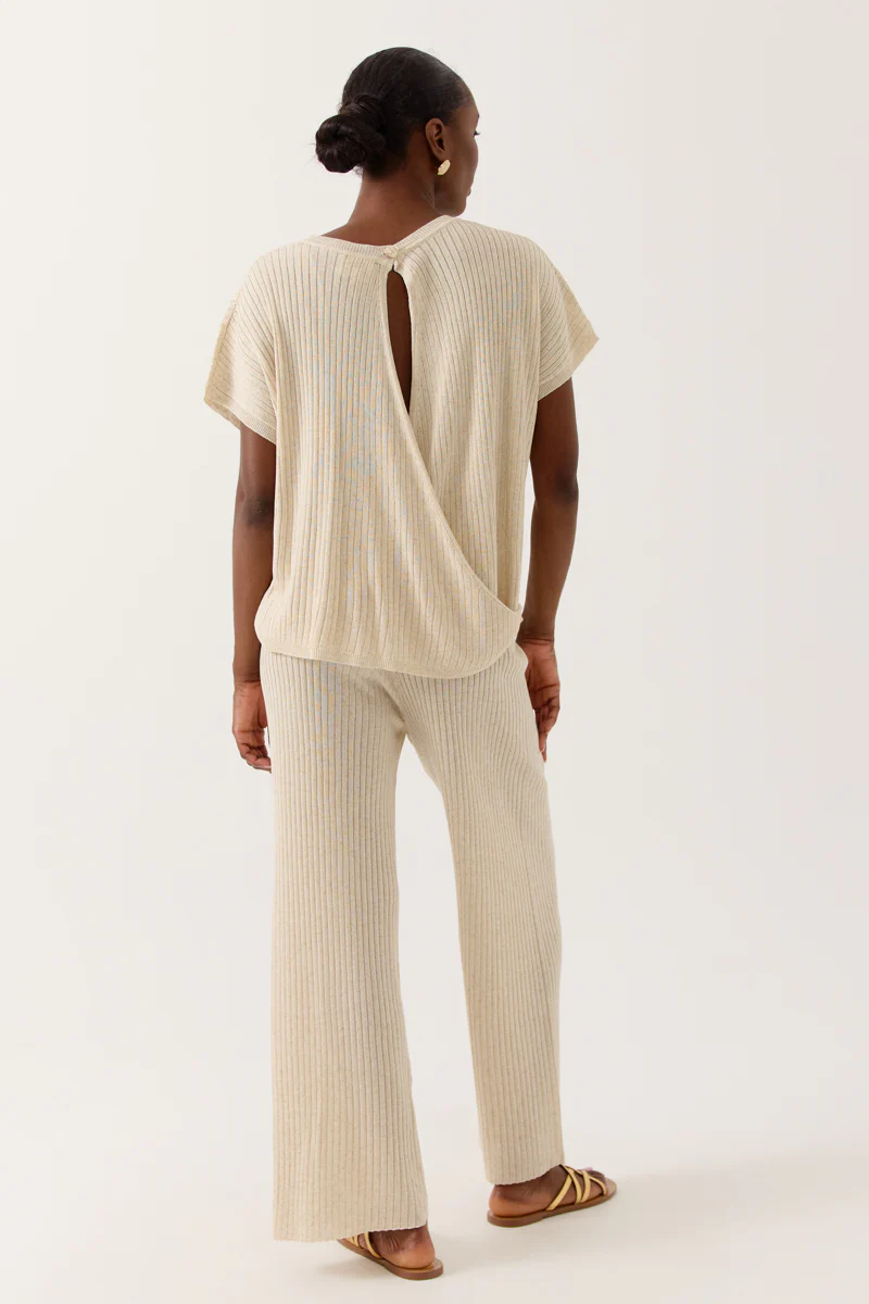 T-shirt maille côtelé écru ouvert dans le dos