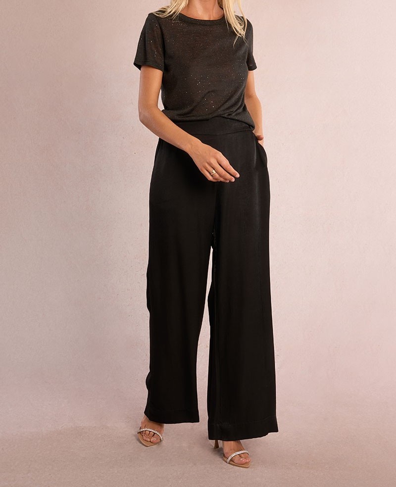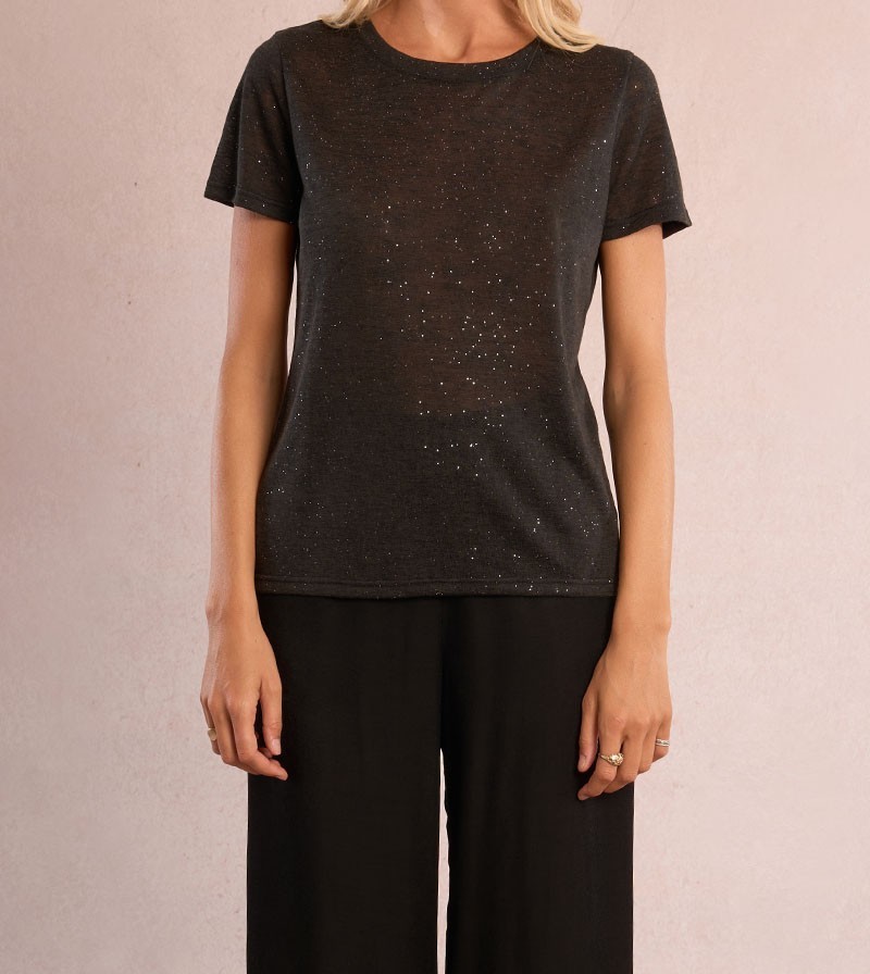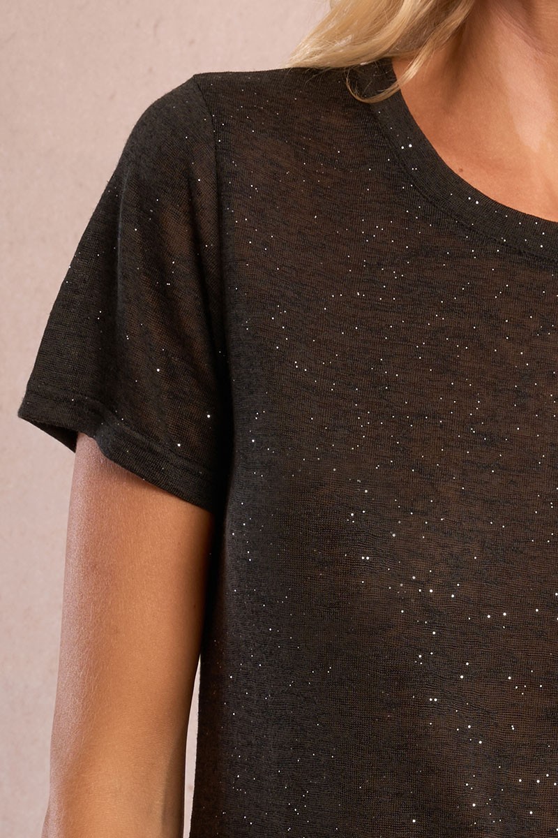 T-shirt pailleté en semi-transparence noir